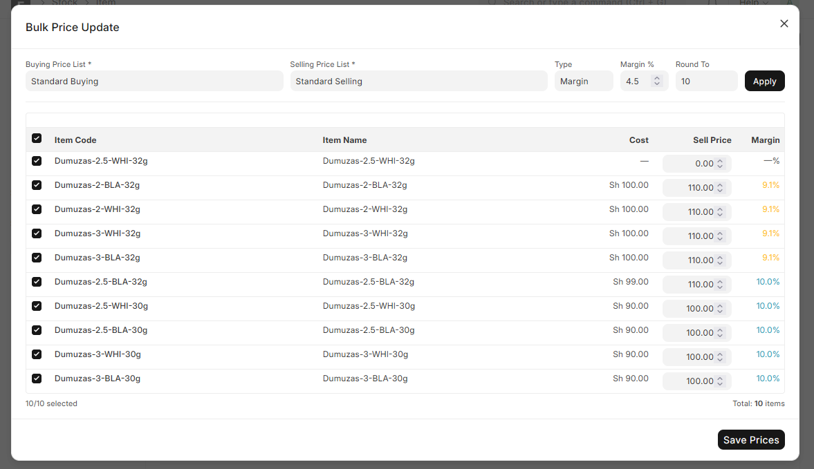 - Visibility into stock balances & ability to select a warehouse