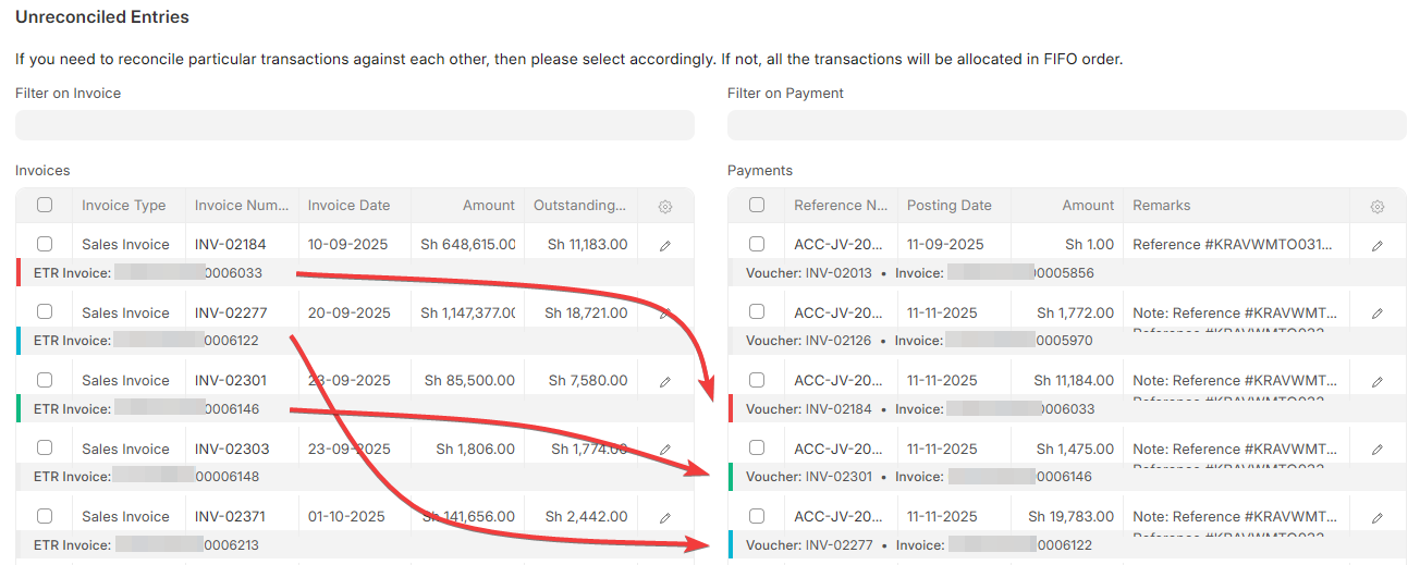 - Plain payment allocation has been improved by color-matching the custom CU INVOICE fields to make VAT Withholding payments super easy to match!